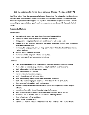 Fillable Online Job Description Certified Occupational Therapy Assistant Cota Fax Email Print Pdffiller